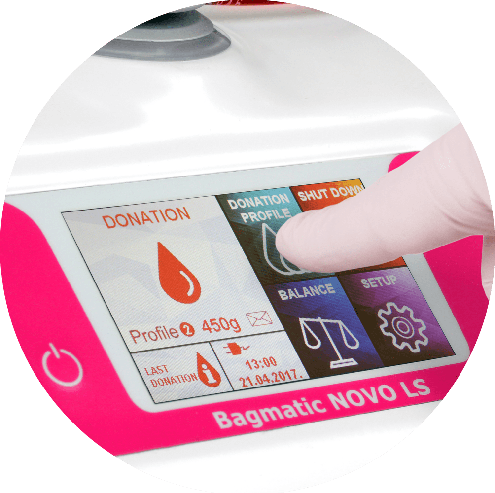 - Hasta 10 preajustes de volumen objetivo, editables durante la extracción de sangre